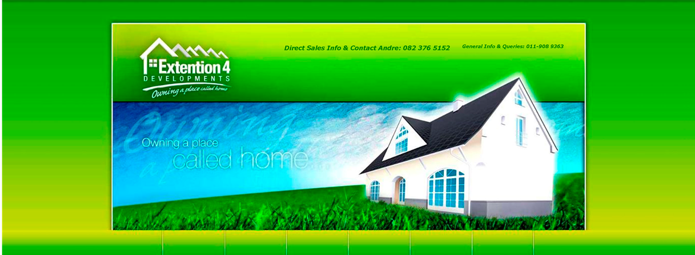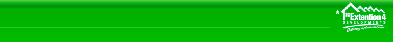 Welcome to EXTENSION 4 DEVELOPMENTS where you will be proud of “OWNING A PLACE CALLED HOME”. EXTENSION 4 DEVELOPMENTS takes pride in terms of producing cost effective, high quality residential properties to meet the needs of the South African population. |